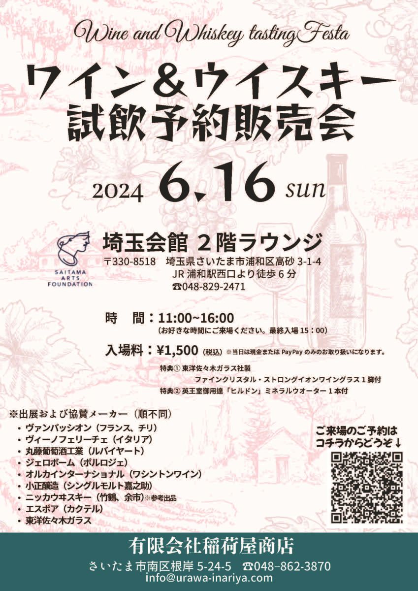 6月16日(日)埼玉 ワイン&ウィスキー試飲予約販売会 / お申し込みはこちら