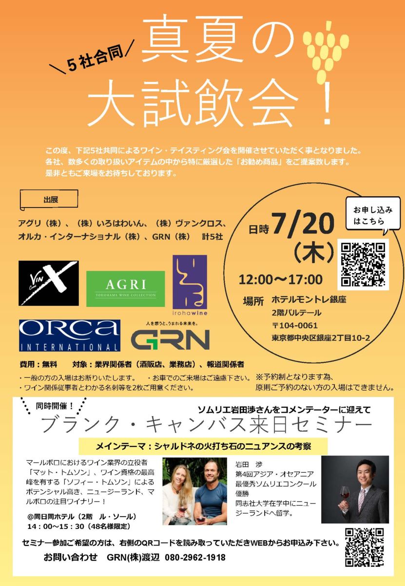 7月20日(木)銀座 5社合同試飲会@ホテルモントレ銀座 申し込みはこちら