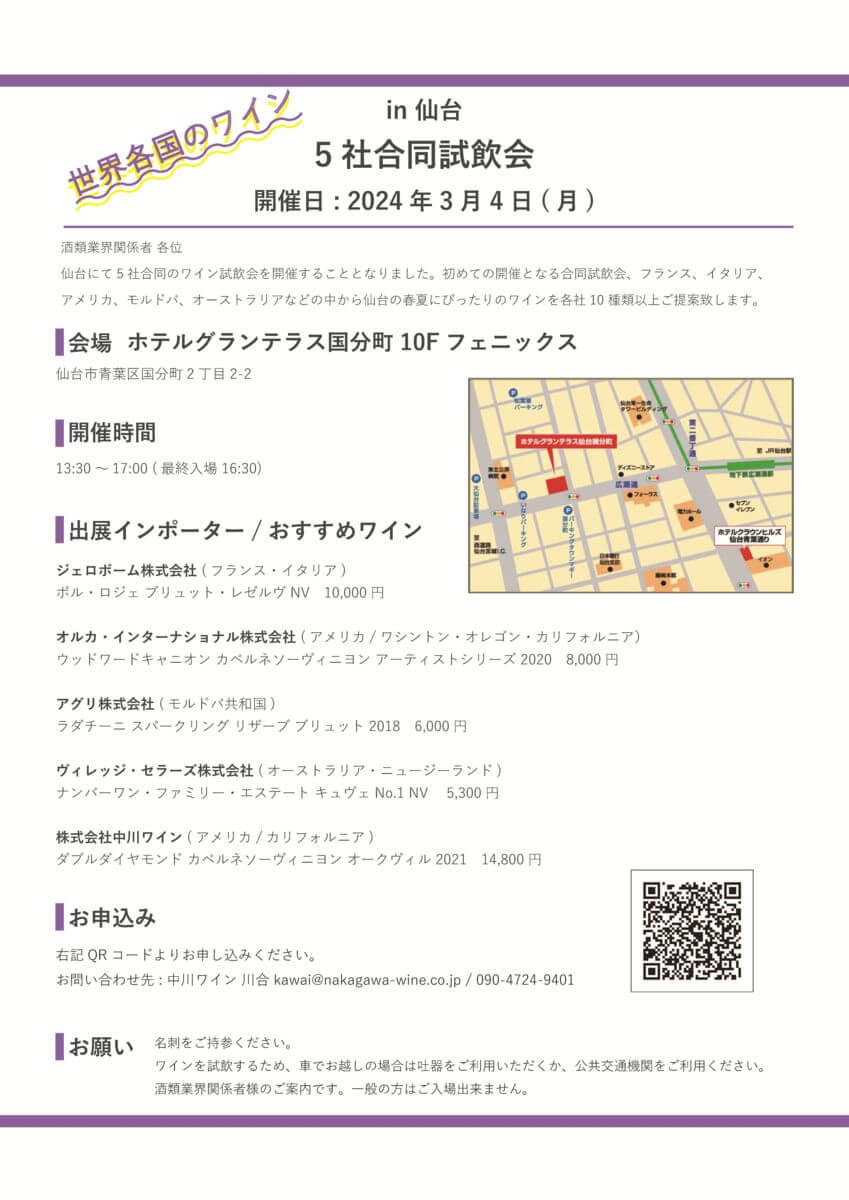 3月4日(月)仙台 5社合同試飲会in仙台 / お申し込みはこちら