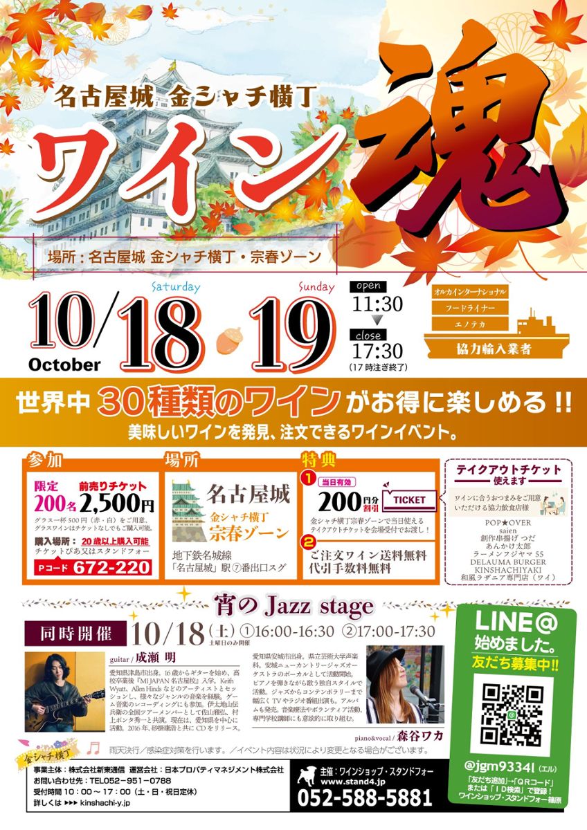 10月18,19(土,日)名古屋 ワインショップスタンドフォーイベント 「ワイン魂」 / 参加はチケットぴあ、またはスタンドフォーにて