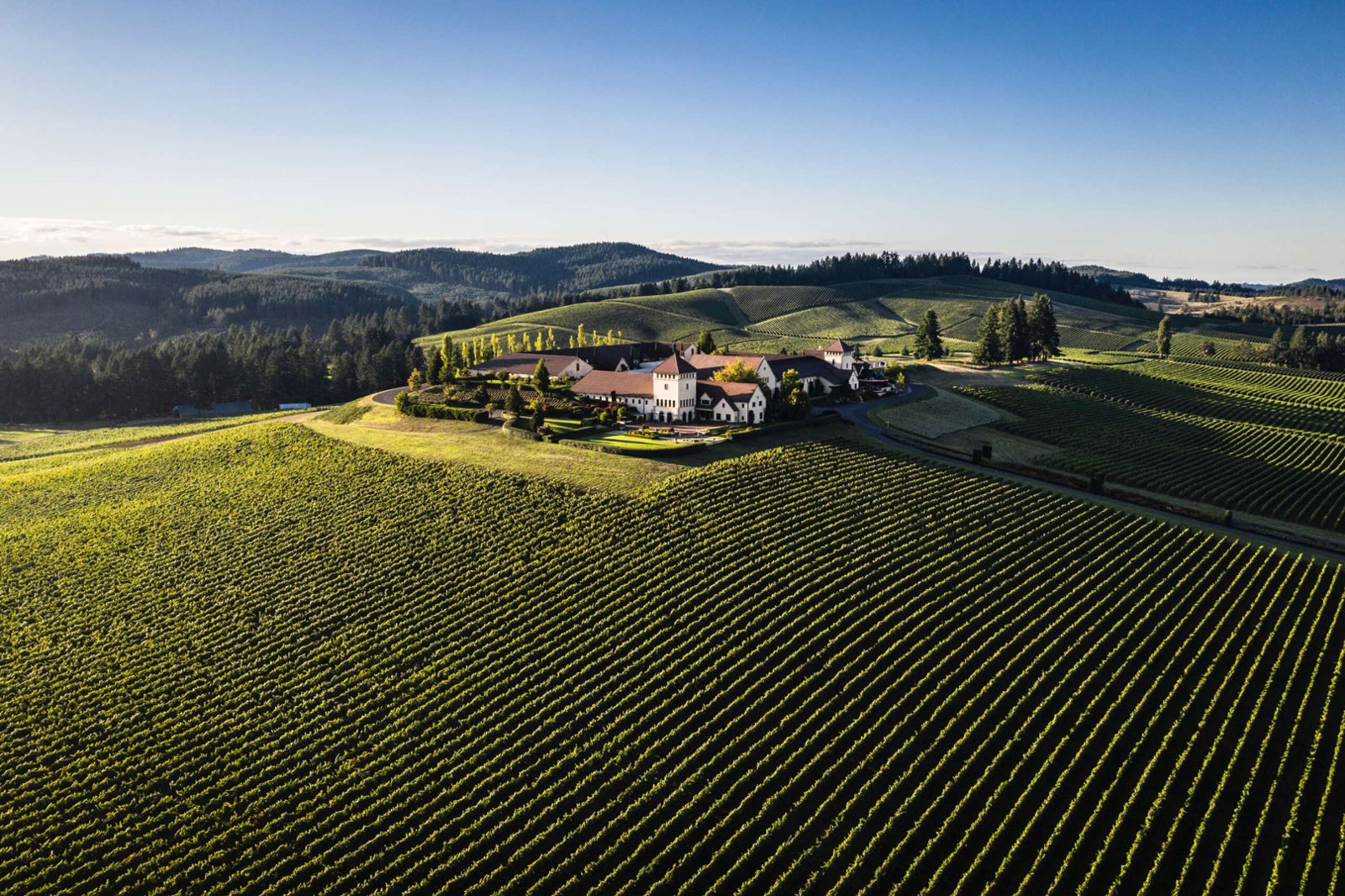 キング・エステートの所有地は約418ha(1,033エーカー)に及び、そのうち約186ha(460エーカー)で主にピノ・グリとピノ・ノワールを栽培しています。 長年の有機認証を経て、2016年にキング・エステートは北米最大のデメター米国認証バイオダイナミック畑と認められました。 自社畑のブドウと約12の他の畑から調達したブドウを合わせると、2025年には年間約25万ケースの生産が可能となります。