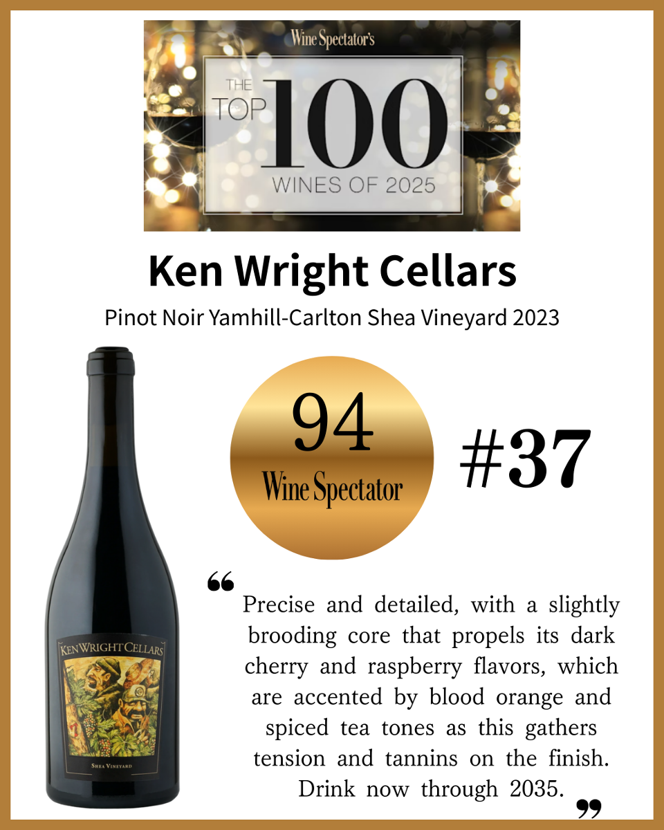 ケン ライト セラーズ ピノノワール シェイ ヴィンヤード 2023が、今年のワイン・スペクテーター トップ100の37位に選ばれました!