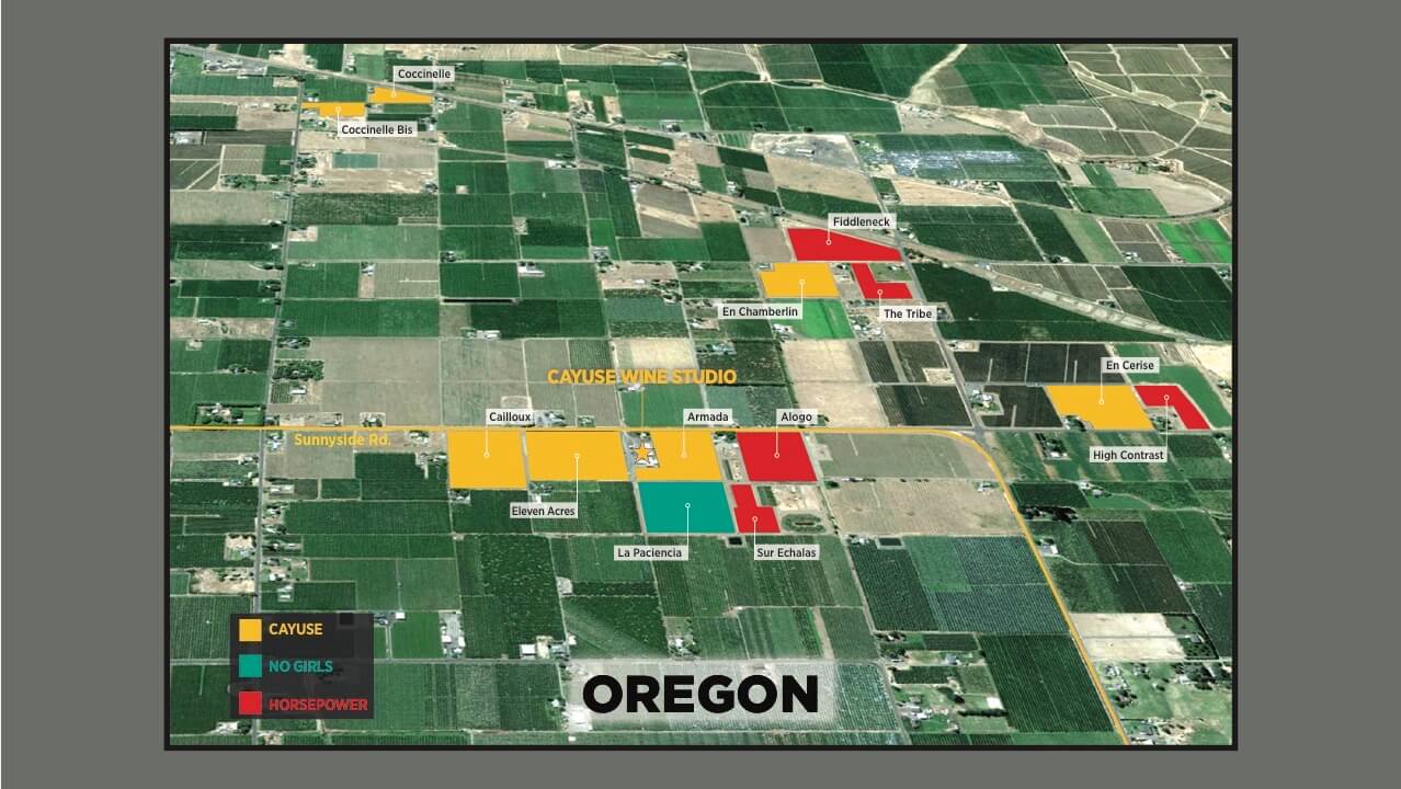 ブドウ畑はワラワラ・ヴァレーのオレゴン州側にあるワラワラ川の古代の川床に位置しています。表土は30〜46㎝のシルト質ロームと玄武岩の玉石の混合物で構成されています。その下には、圧縮された石畳の層があり、場所によっては数十メート深さがあります。